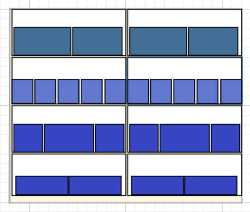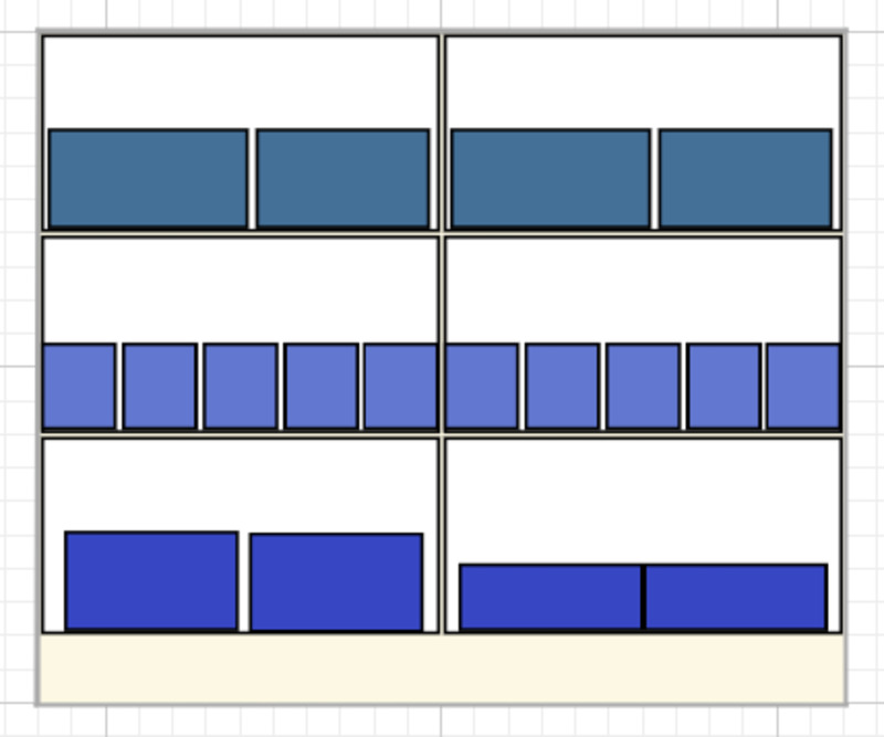 -Pour l'étage du milieu, chacune aura 5 bacs de 40x22x25.