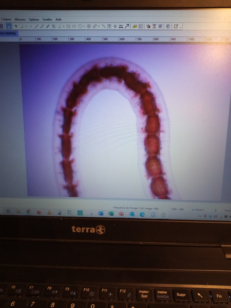 Peux-tu faire une capture d'écran plutôt qu'une photo de l'écran ? En faisant la mise au point sur les soies, dans la partie antérieure (les premières, juste après "la tête"). On peut au moins vérifier qu'il s'agit d'un membre de la famille des Tubificidae.