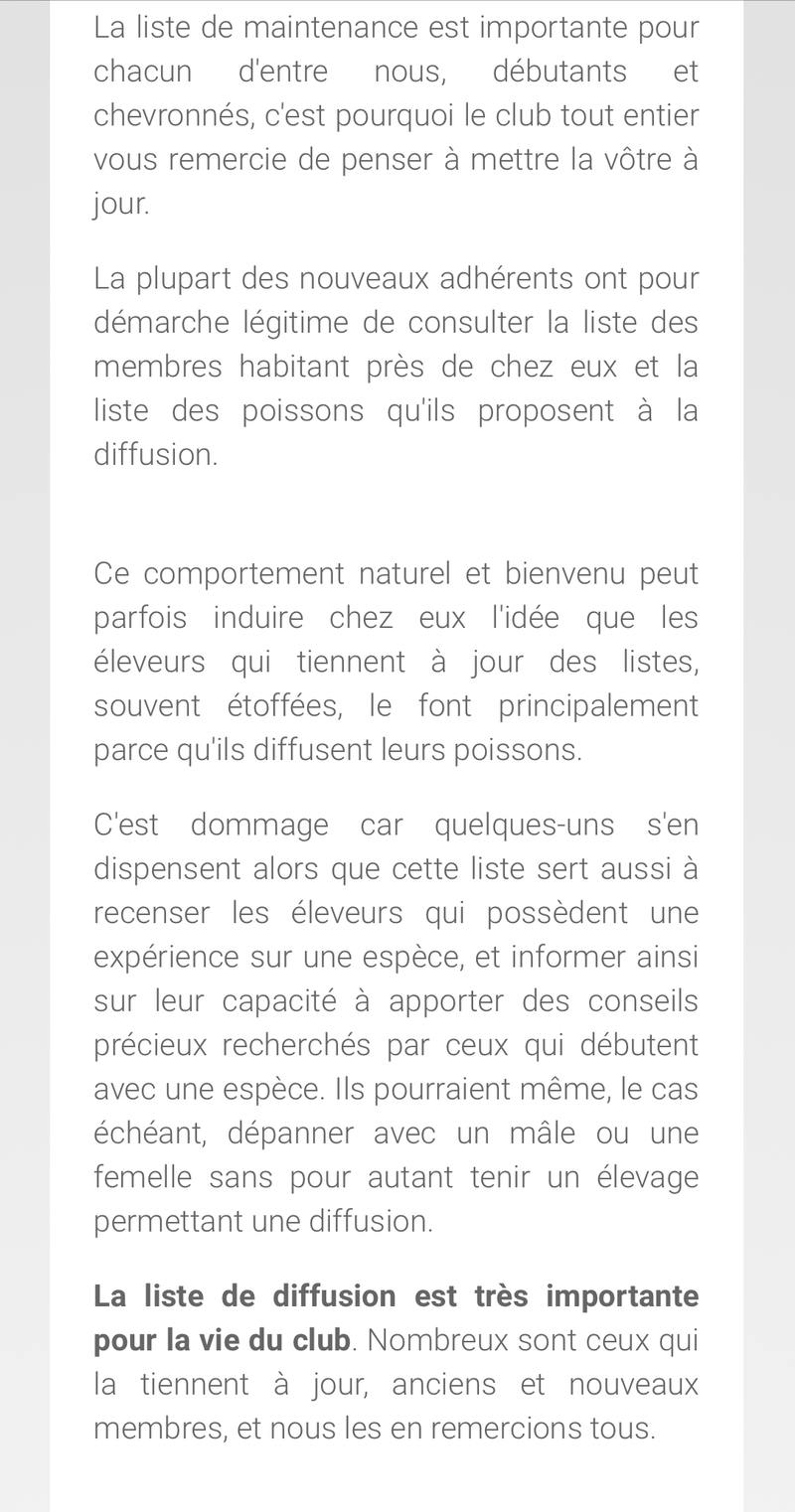 Les listes de maintenance sont indispensables de mon point de vue, je trouve que ça permet de savoir où l'association en est sur tel ou tel espèce et permet de réagir sur les espèces peu maintenu au KCF.