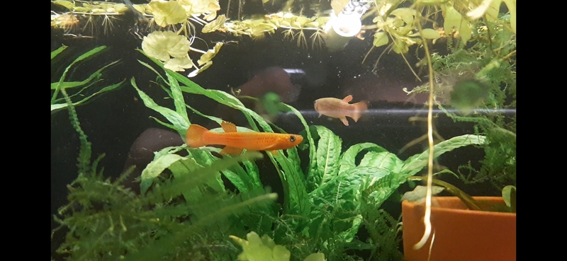 Je maintiens ces deux couples dans un même bac. Ils ne sont pas agressifs, ils sont même très prolifiques, j'ai eu beaucoup de reproduction en naturel dont 5 qui sont quasiment adultes.