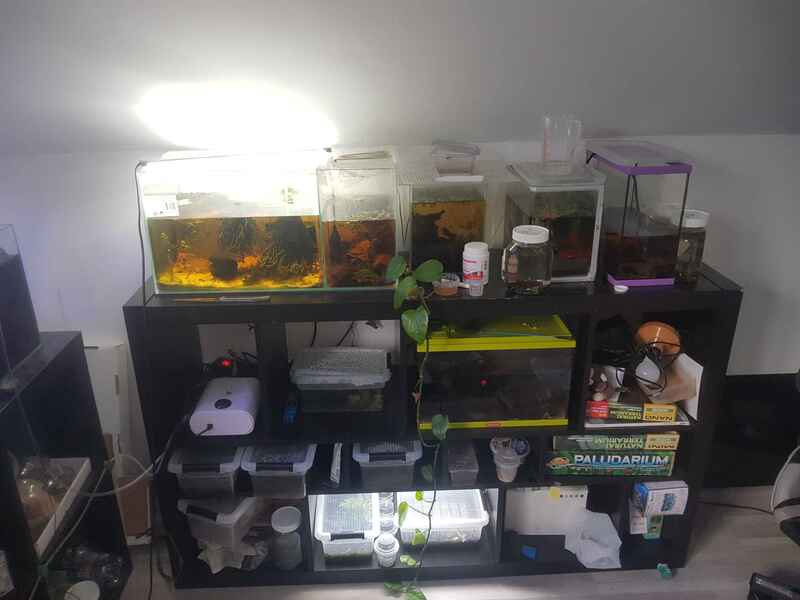 Concernant la pompe à air, tu n'es pas obligé d'en mettre une. Il faut que tes bacs soient remplis de plantes ( mousse, plantes de surfaces...). Et faire des changements d'eau régulièrement. C'est comme ça que je procède dans ma nouvelle installation. Par contre je suis rigoureux sur les changements d'eau. Toutes les semaines, maximum 10 jours. Ça fonctionne très bien.