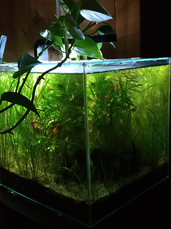 Après le passage de 2 bettas, l'aquarium est maintenant habité seulement d'escargots planorbes et melanoides.